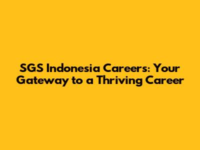 SGS Indonesia Careers: Your Gateway To A Thriving Career