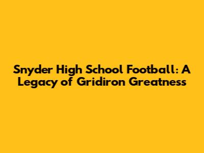 Snyder High School Football: A Legacy Of Gridiron Greatness