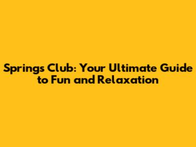 Springs Club: Your Ultimate Guide To Fun And Relaxation