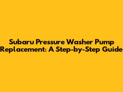 Subaru Pressure Washer Pump Replacement Guide