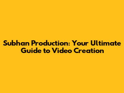 Subhan Production: Your Ultimate Guide To Video Creation