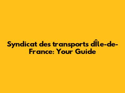 Syndicat Des Transports D'Île-de-France: Your Guide
