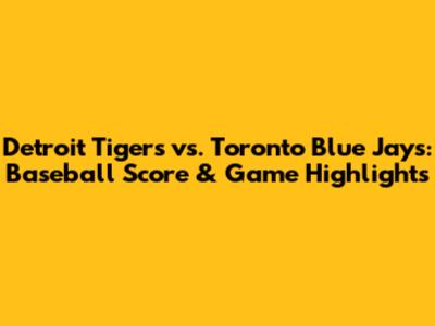 Tigers Vs. Blue Jays: Baseball Score & Game Highlights