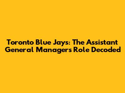 Hey guys! Ever wondered about the inner workings of your favorite baseball team, the Toronto Blue Jays? Beyond the sluggers and pitchers on the field, there's a whole army of folks working tirelessly behind the scenes. One of the most critical roles? The Assistant General Manager (AGM). Let's dive deep into what this gig entails, the responsibilities, and the path to becoming a key player in the Blue Jays' front office. It's a fascinating world, full of strategy, data analysis, and a whole lot of baseball passion!