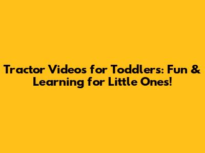 Tractor Videos For Toddlers: Fun & Learning