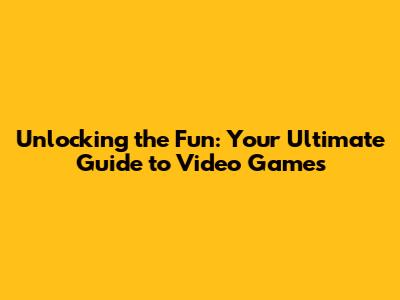 Unlocking The Fun: Your Ultimate Guide To Video Games
