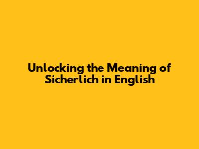Unlocking The Meaning Of Sicherlich In English