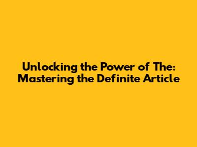 Unlocking The Power Of 'The': Mastering The Definite Article