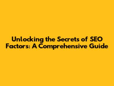 Unlocking The Secrets Of SEO Factors: A Comprehensive Guide