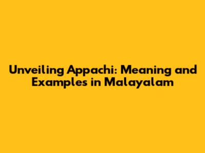 Unveiling Appachi: Meaning & Examples In Malayalam