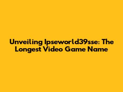 Unveiling Ipseworld39sse: The Longest Video Game Name
