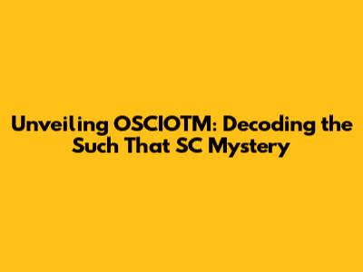 Unveiling OSCIOTM: Decoding The 'Such That SC' Mystery