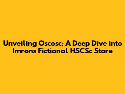 Unveiling Oscosc: A Deep Dive Into Imron's Fictional HSCSc Store