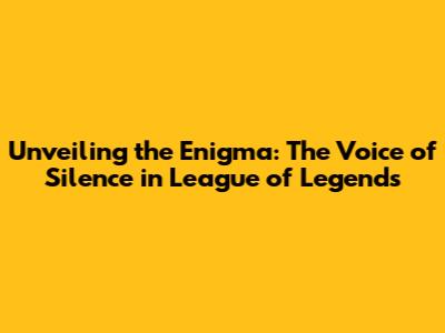 Unveiling The Enigma: The Voice Of Silence In League Of Legends