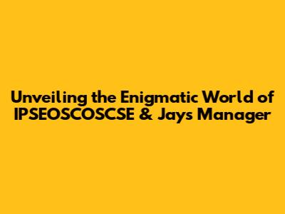 Unveiling The Enigmatic World Of IPSEOSCOSCSE & Jays Manager