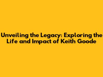 Unveiling The Legacy: Exploring The Life And Impact Of Keith Goode