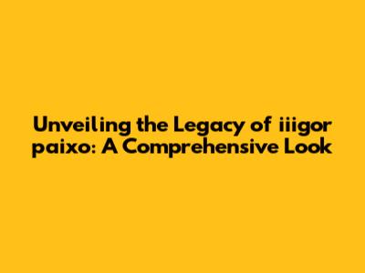 Unveiling The Legacy Of Iiigor Paixo: A Comprehensive Look