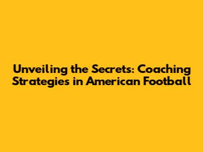 Unveiling The Secrets: Coaching Strategies In American Football