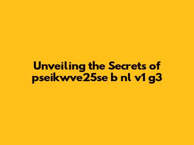 Unveiling The Secrets Of Pseikwve25se B Nl V1 G3