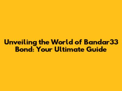 Unveiling The World Of Bandar33 Bond: Your Ultimate Guide