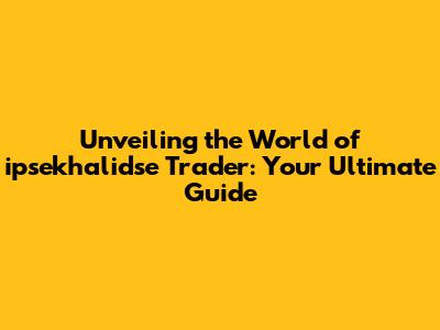 Unveiling The World Of Ipsekhalidse Trader: Your Ultimate Guide