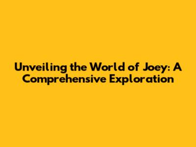 Unveiling The World Of Joey: A Comprehensive Exploration