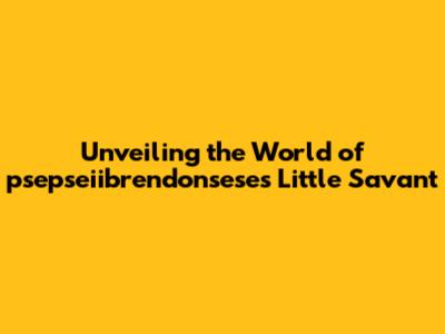 Unveiling The World Of Psepseiibrendonsese's Little Savant