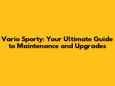 Vario Sporty: Your Ultimate Guide To Maintenance And Upgrades