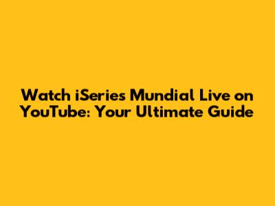 Watch ISeries Mundial Live On YouTube: Your Ultimate Guide