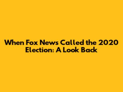 When Fox News Called The 2020 Election
