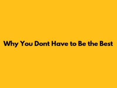 Why You Don't Have To Be The Best